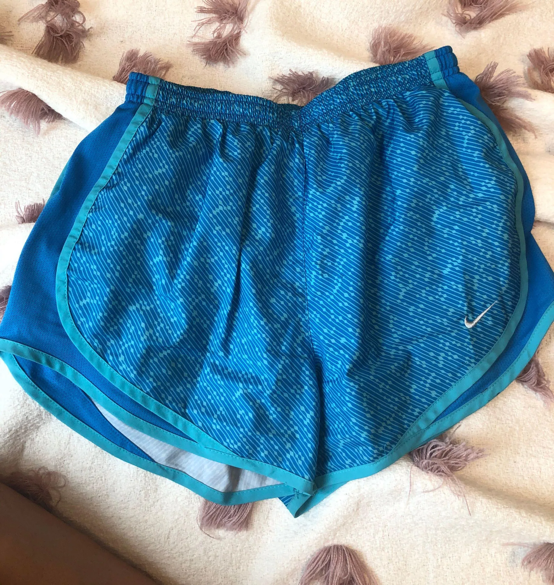 Blue patterned running shorts Used condition: few spots as shown in last 2 pictures Stain is on insi... Show more