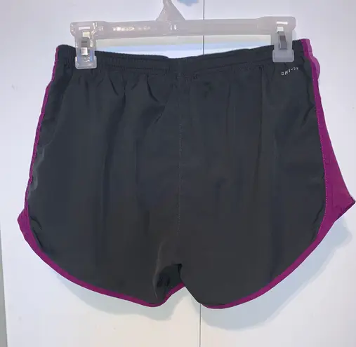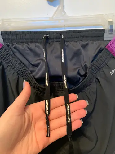 Nike Dri-fit running shorts dark grey with purple accents size medium lining included tie enclosure... Show more