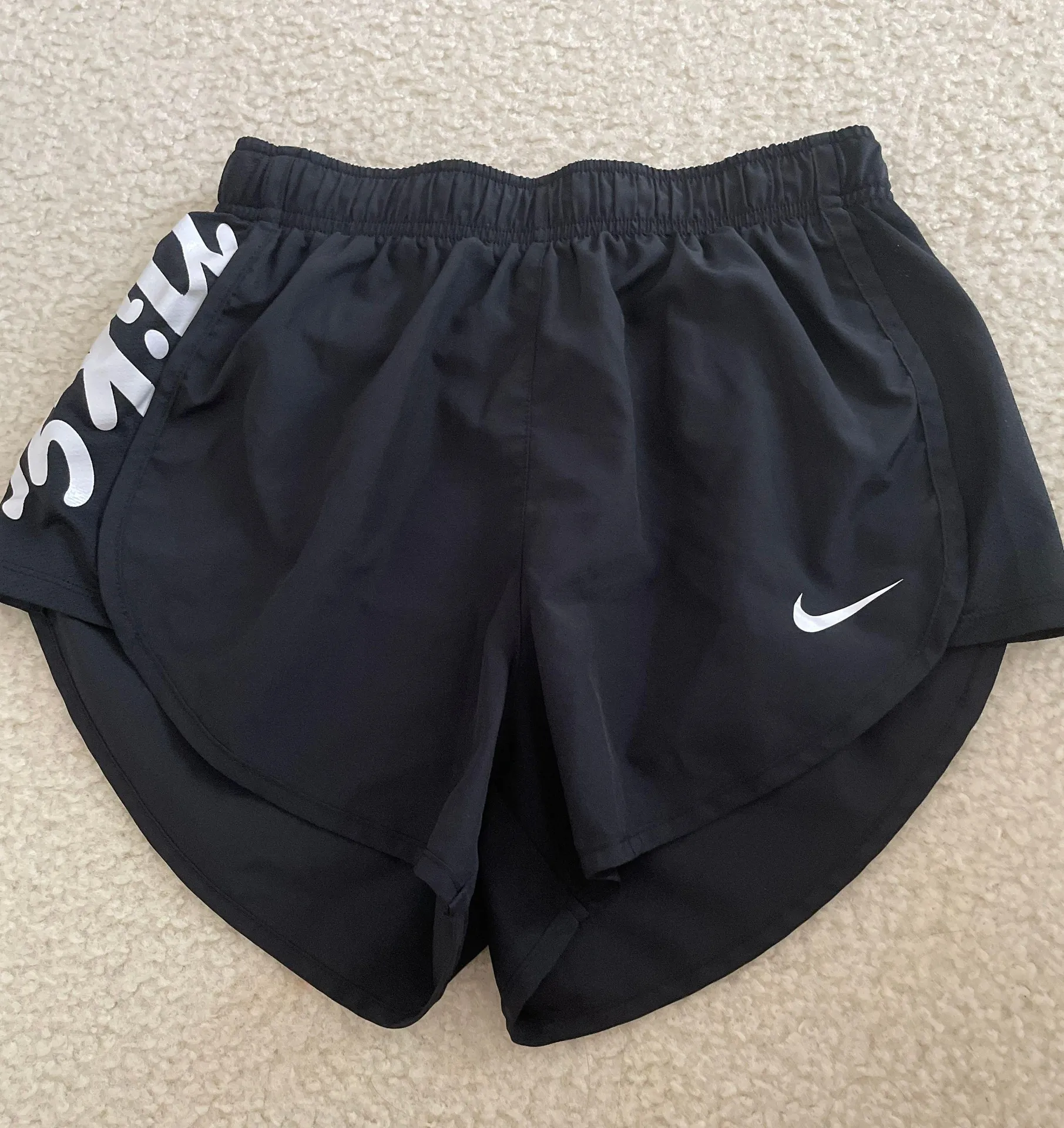 Has strings to adjust on the inside and says Nike on the side of the shorts. there is no size writte... Show more