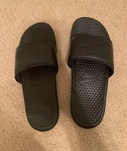 Bought from Curtsy, in great condition but a little too big for me! Size 8 black nike slides barel... Show more