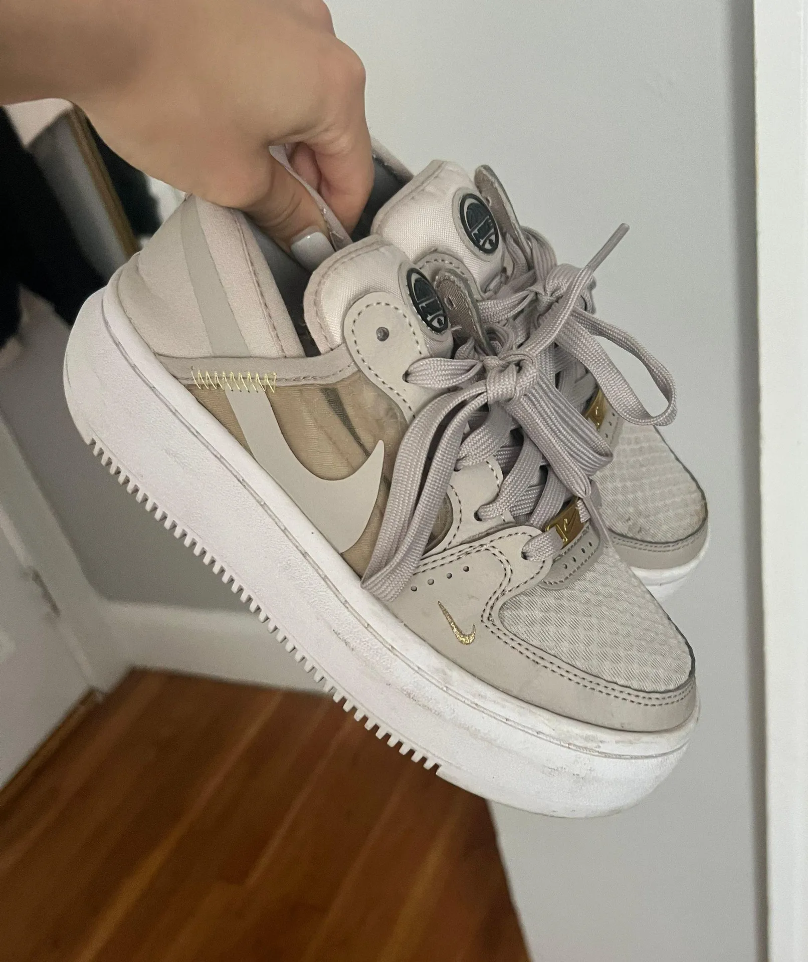 Nike court vision alta womens sneakers in brown and tan.