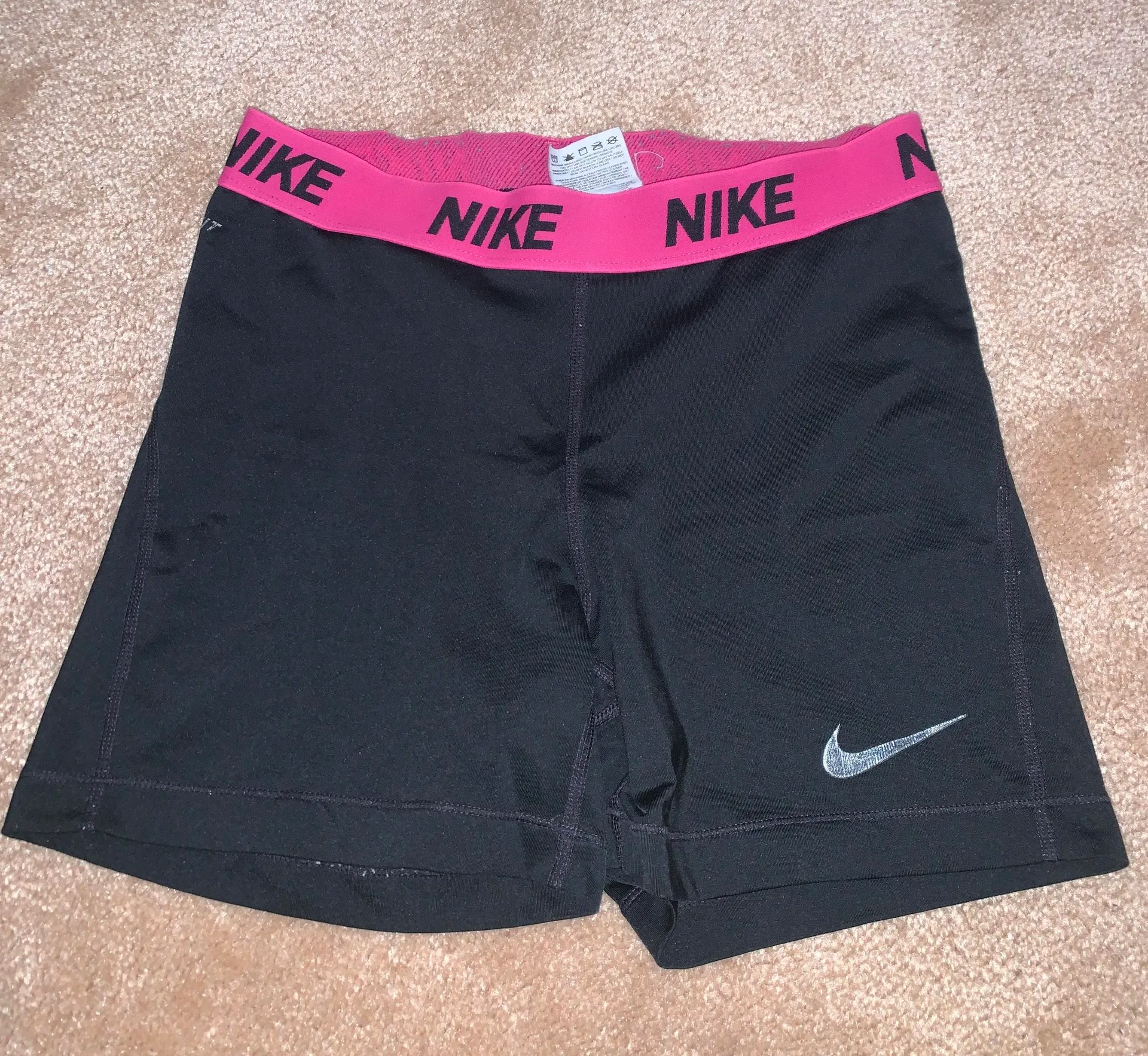 worn, the nike logo is coming off. aren’t stretched and still fit true to size
