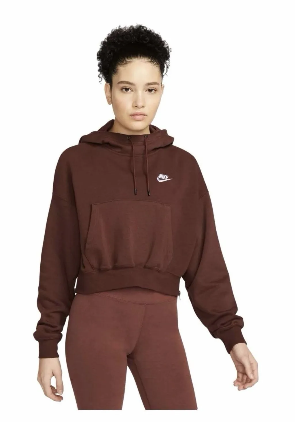 Nike Sportswear Essentials women’s hoodie in brown, cropped length with hood. Please check details o... Show more