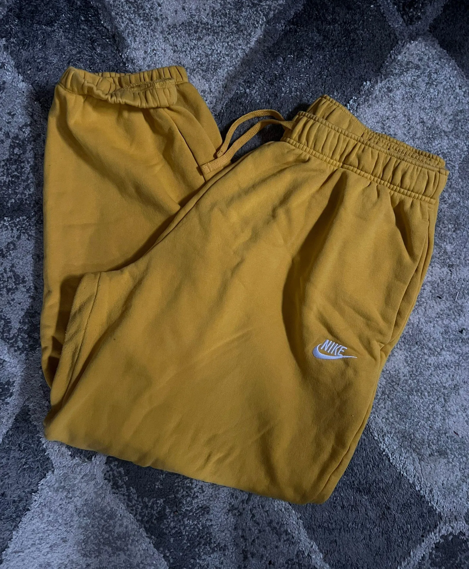 Yellow nike high waisted sweatpants I wore them twice to different themed football games, so comfor... Show more
