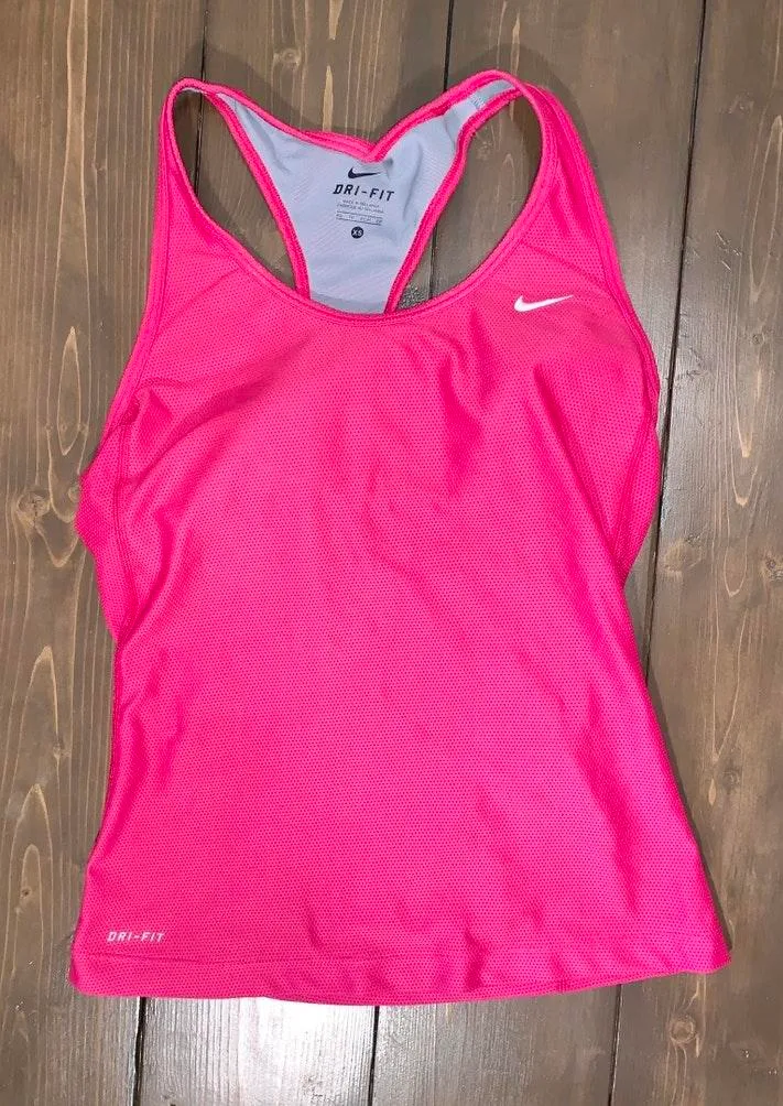 Hot pink Nike Dri Fit tank top with built in bra. Size XS