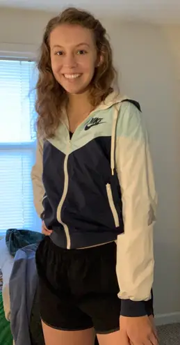 - Rare tri-color Nike windbreaker - Hooded jacket with zipper Pockets with zipper - Elastic aroun... Show more