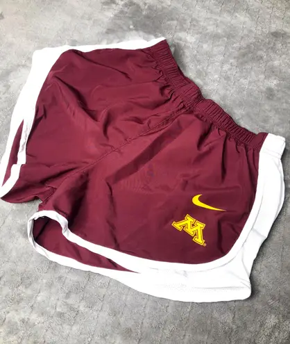 Nike Dri-Fit University of Minnesota Golden Gophers athletic shorts. Maroon with gold and white acce... Show more
