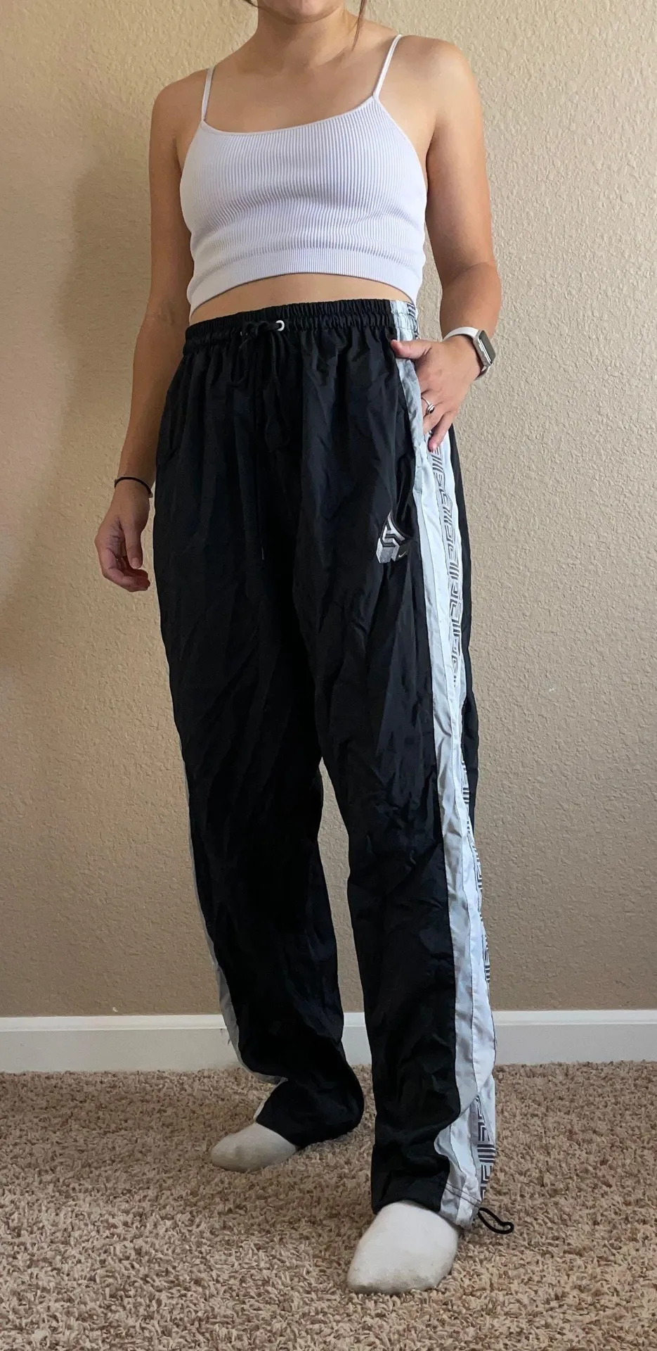 Mens XL. In good condition! Model is 5’3”. Has a couple tiny holes on the bottom right pant leg (pic... Show more