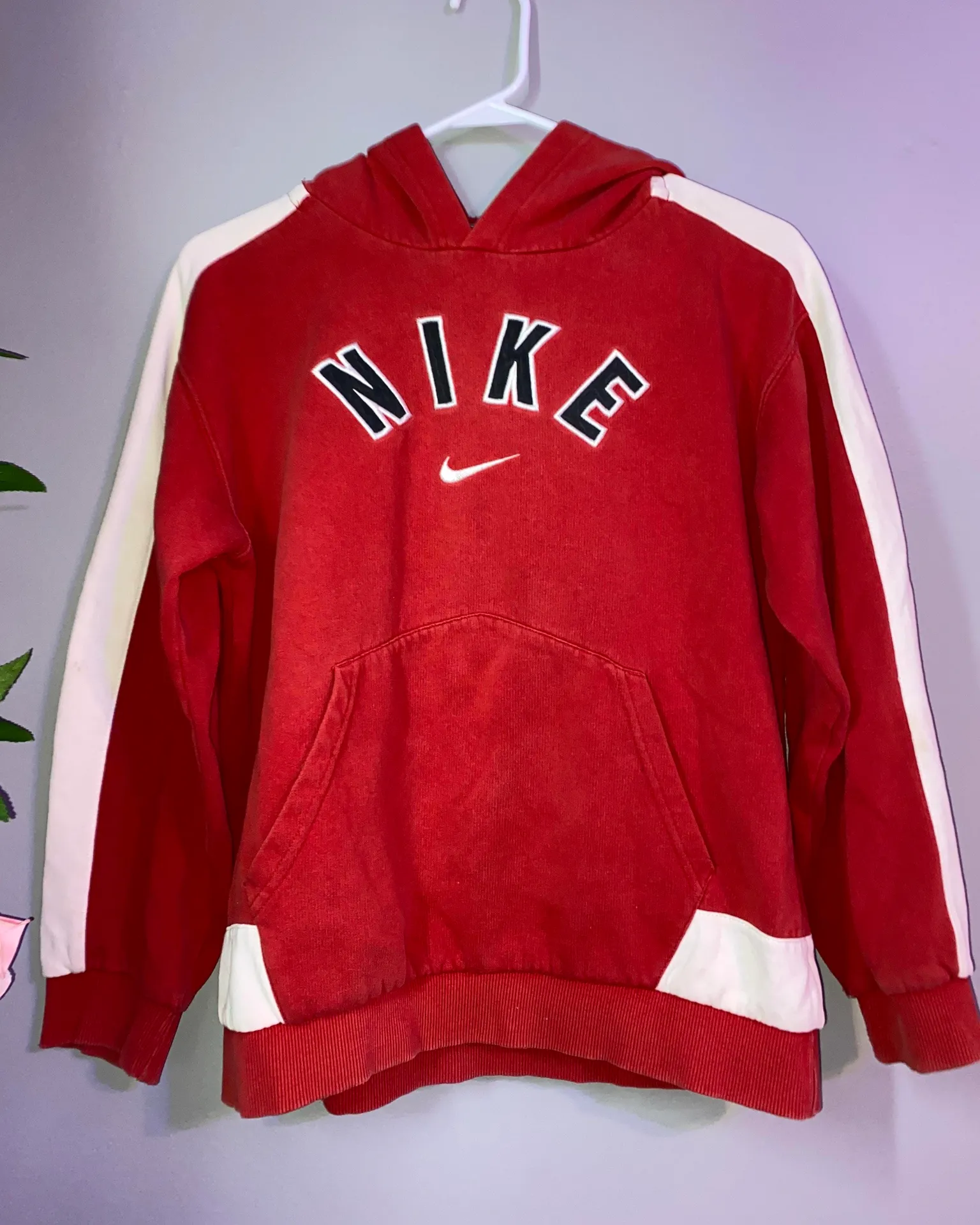 Red nike vintage sweatshirt *** IT IS A BOYS XL (16-18) SO IT FITS A XSMALL/SMALL A COUPLE RLY S... Show more