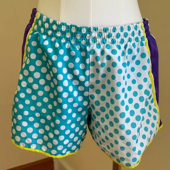 White & Blue Polka Dot Purple Yellow Stripe Dri Fit Elastic Waist Sz S