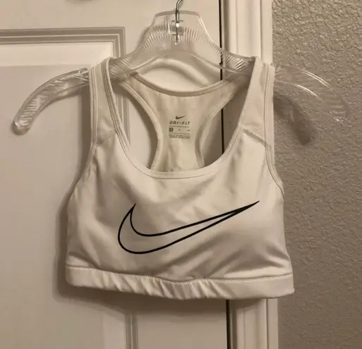 In great condition! White sports bra with Nike logo. Criss-cross back