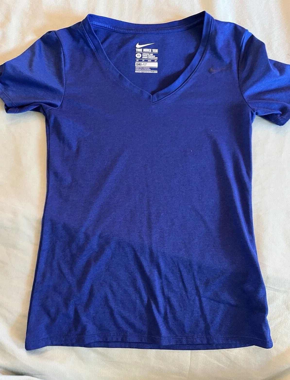 This Nike women's activewear T-shirt features a V-neckline and short sleeves, with a pullover closur... Show more