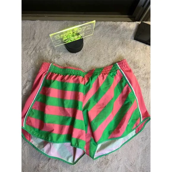 Elevate your activewear collection with this Nike Women's Sweat in a vibrant multicolor striped pattern. Designed for those who love to stay active, this sweat is perfect for running, workouts, or any summer activity. The Dri-Fit polyester fabric ensures you stay cool and comfortable, while the lightweight and breathable design keeps you moving freely. With a mid-rise fit, elastic waistband, and adjustable drawstring, it offers a personalized fit. Plus, the built-in liner adds extra support. This pre-owned piece is machine washable for easy care.