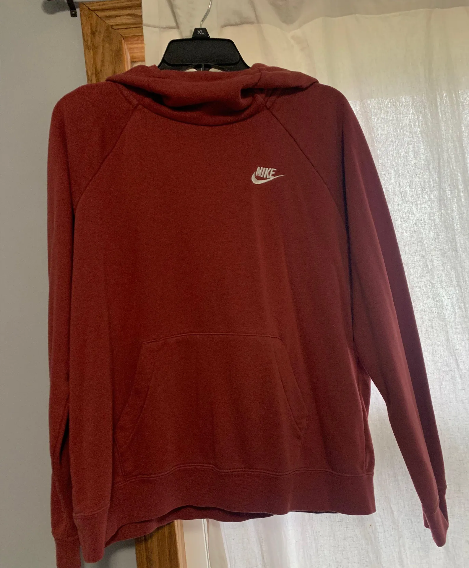Size medium women’s nike sweatshirt. It is a funnel-neck and it’s more pink than it looks in the pic... Show more