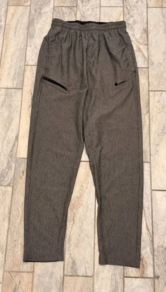 Nike women's medium gray DRI-FIT tapered leg sweatpants. Rise: 10" Waist: 26" Inseam: 29" 2 open poc... Show more