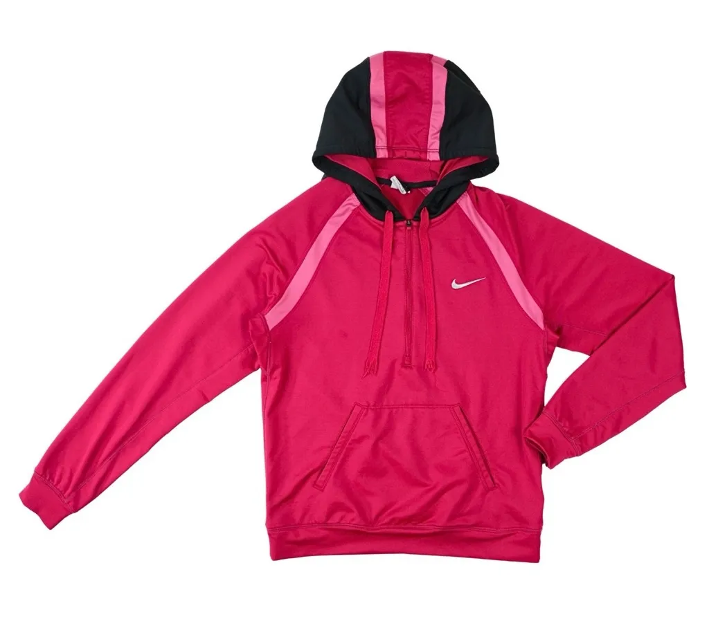 Nike Women's Size Small Pink with gray/pink hoodie Therma-Fit Hoodie Sweatshirt 1/4 Zip Long Sleeve... Show more