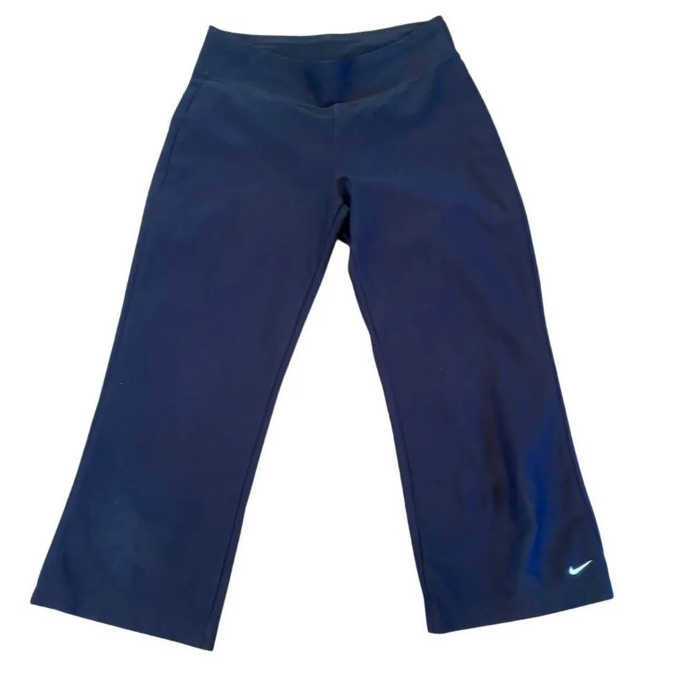 These Nike Dri-FIT cropped leggings in black are designed for women, size XS (0-2). Made from breathable, moisture-wicking material, they are ideal for running, yoga, and other athletic activities. Suitable for activewear occasions, these leggings offer comfort and performance. Manufactured in Thailand, they are machine washable for easy care. Pre-owned condition.