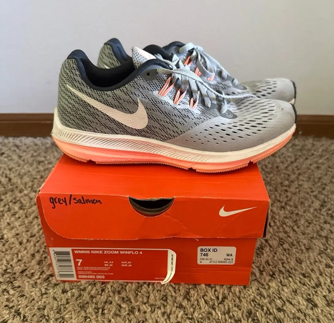 Nike Women's Zoom Winflo 4 Lace Up Running Sneaker Shoes Gray Size 7