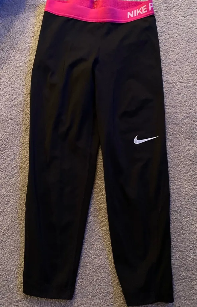 Nike Xs black and pink 3/4 leggings. Like new. Very stretchy - $25 - From Madison