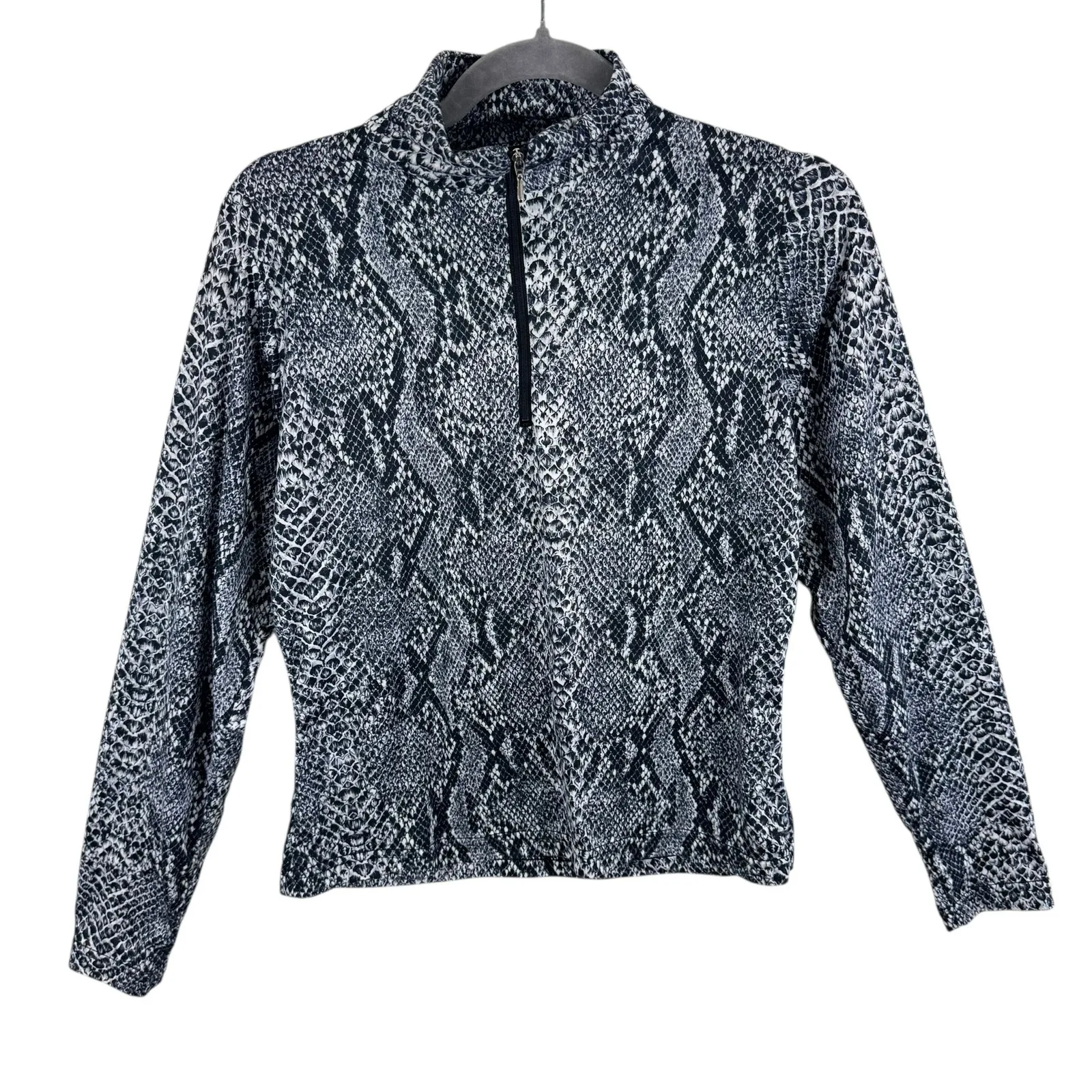 Excellent preowned condition. NILS Brooklyn Black White Snakeskin 1/2 Zip Stretchy T-Neck Athleisure... Show more