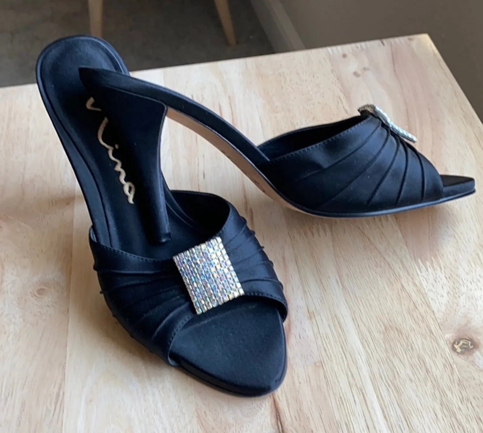 Nina crystals embellished satin leather Satin and Leather upper, leather sole, 4 inch heel perfect... Show more