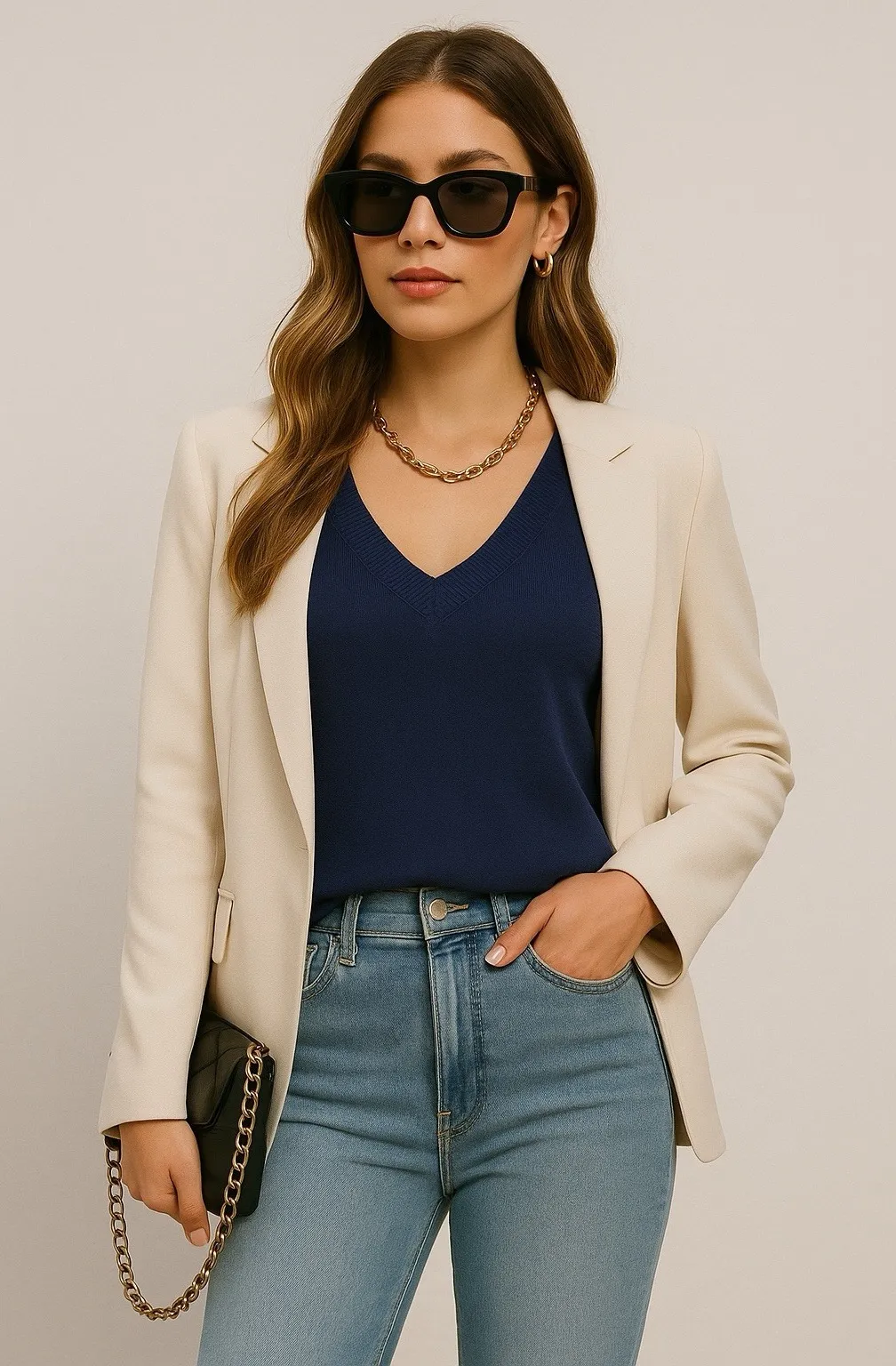 This Nine & Company sleeveless knit pullover in deep navy blue is the perfect classic layering piece. Soft, lightweight fabric with ribbed trim and a flattering V-neckline — ideal under blazers, cardigans, or worn alone for effortless polish. Details: • Size: XL • Color: Navy Blue • Style: Sleeveless V-Neck Knit Pullover • Material: Soft acrylic blend (lightweight knit) • Condition: New with tags • Perfect for: Workwear, layering, casual chic looks
