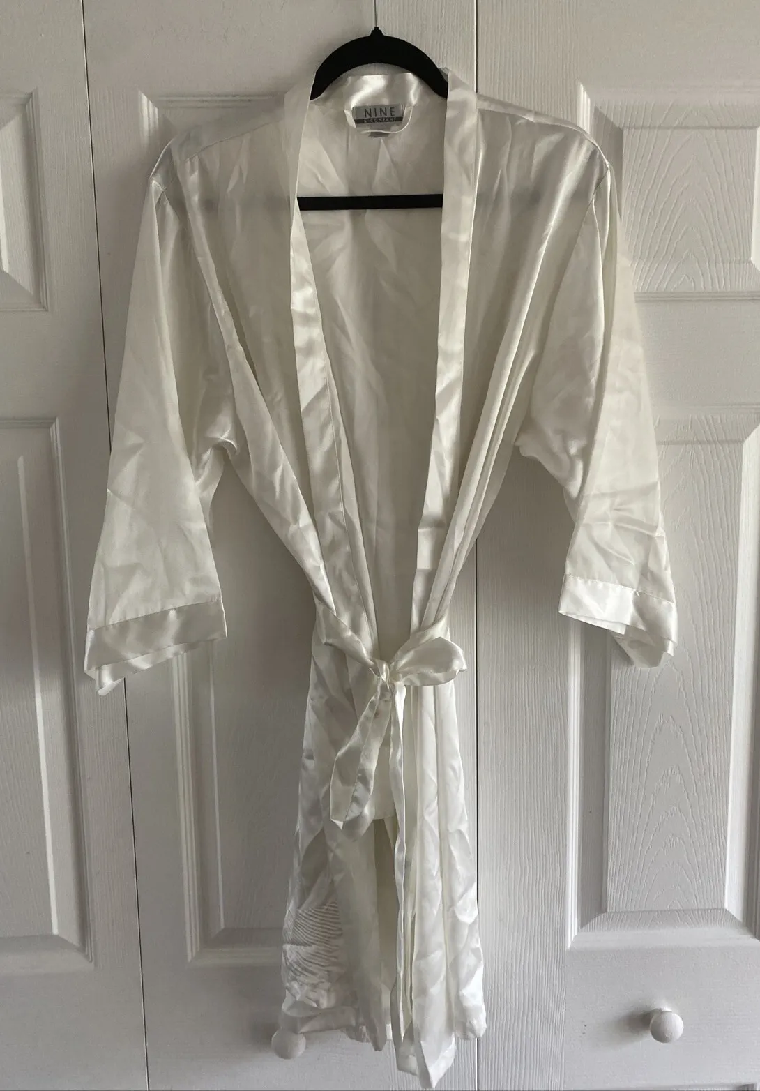 Nine and Company Womens XL Pearl White Silky Robe with Tie Long Sleeve Bridal - $22 - From Arielle