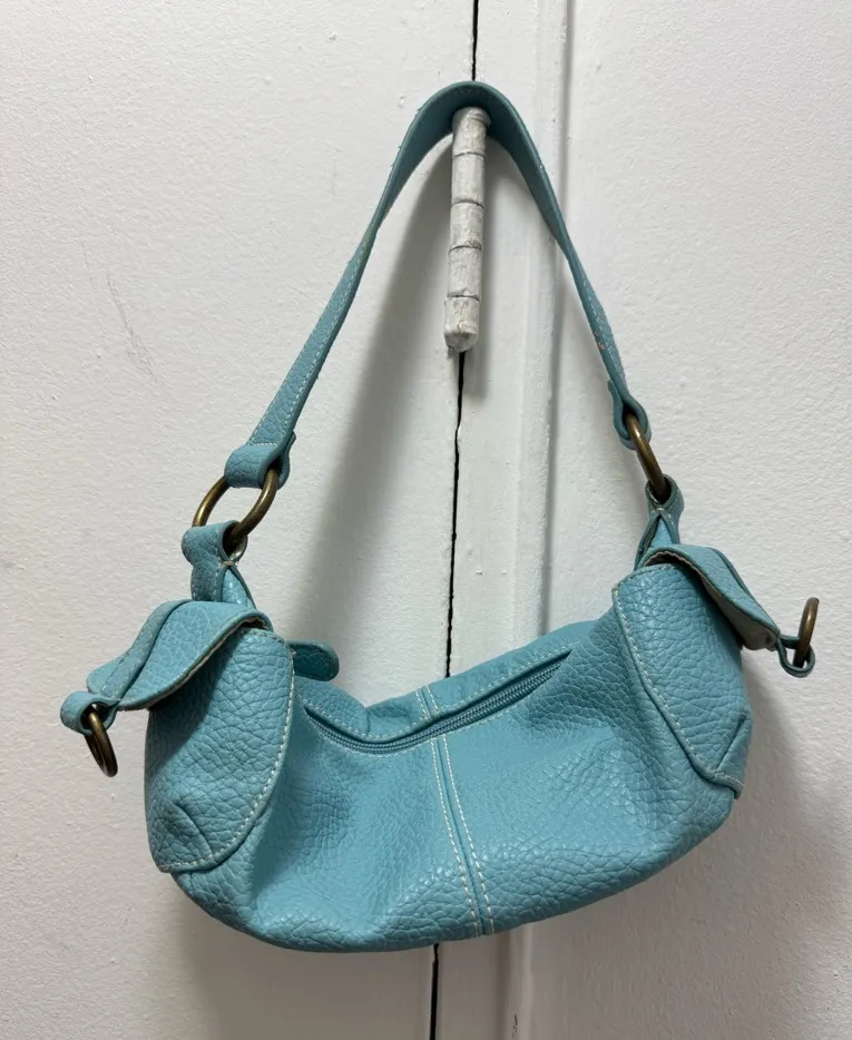 Y2K Nine & Co Pebbled Leather Robin Blue mini shoulder baguette cargo pocket bag - $40 - From Sarah