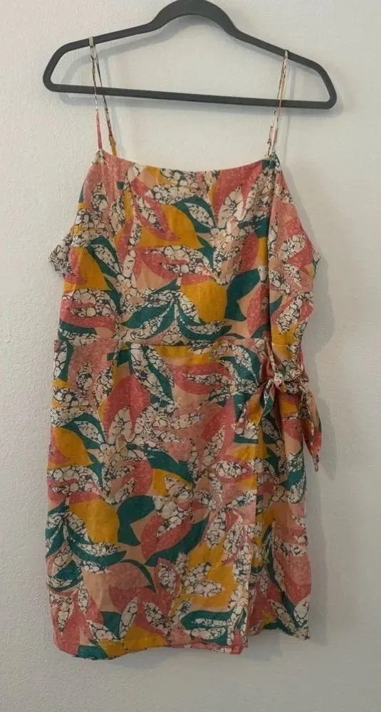 This is a listing for a preowned Nine West CRACKLE LEAVES CORAL SIDE TIE FAUX WRAP MINI SQUARE NECK... Show more