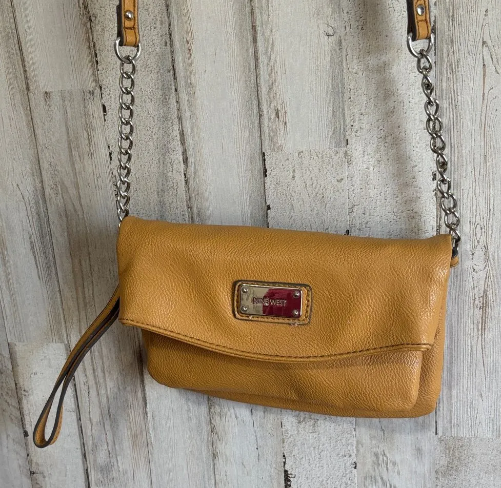 Chic Nine West wristlet in vibrant yellow. Features a chain strap and sleek design. Perfect for any... Show more