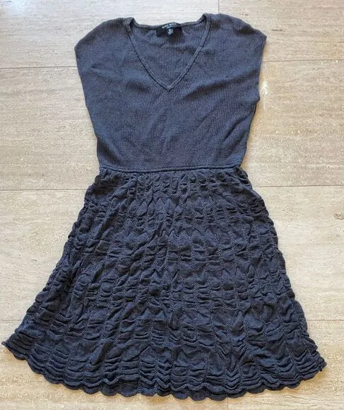 Elegant Nine West dress in versatile gray. Features a knit V-neck top and a textured, patterned skir... Show more