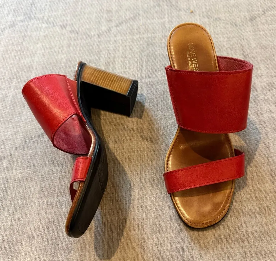 Nine West Italy Leather Citigrl Red and Brown Mules with Modern Block Heel 6 - $45 - From Kayla
