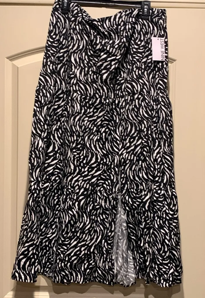 This Nine West black and white long skirt is an XL. The waistband measures 18” and the length is 36... Show more