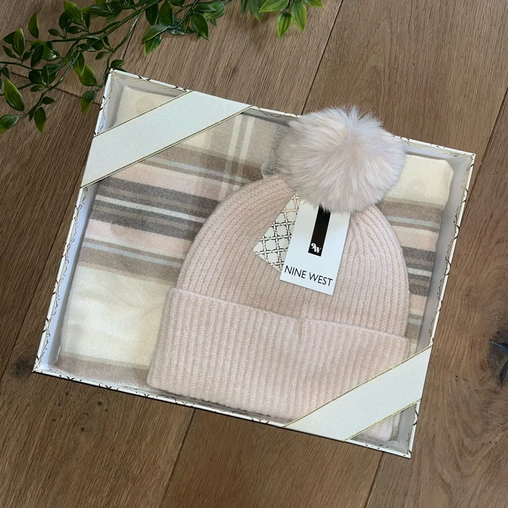 Stylish beanie and scarf set. Soft pink tones. Ideal for warmth and fashion. Nine West NEW GIFT SET... Show more