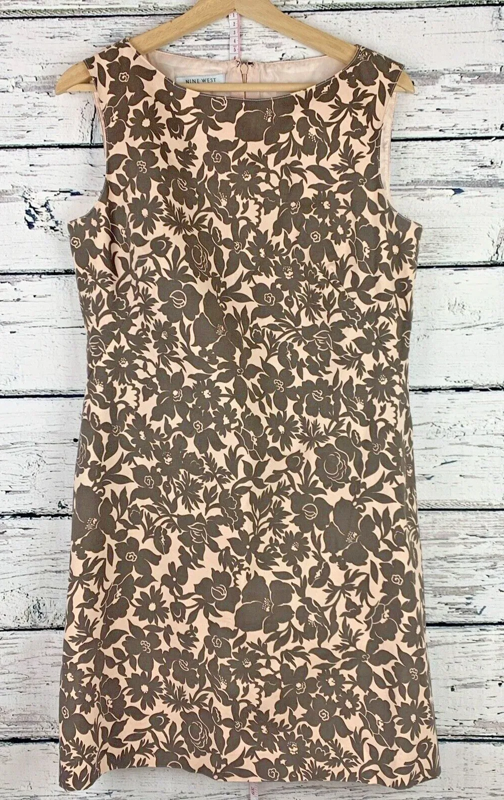 A stylish and versatile dress featuring a brown floral print on a light pink background. This sleeve... Show more