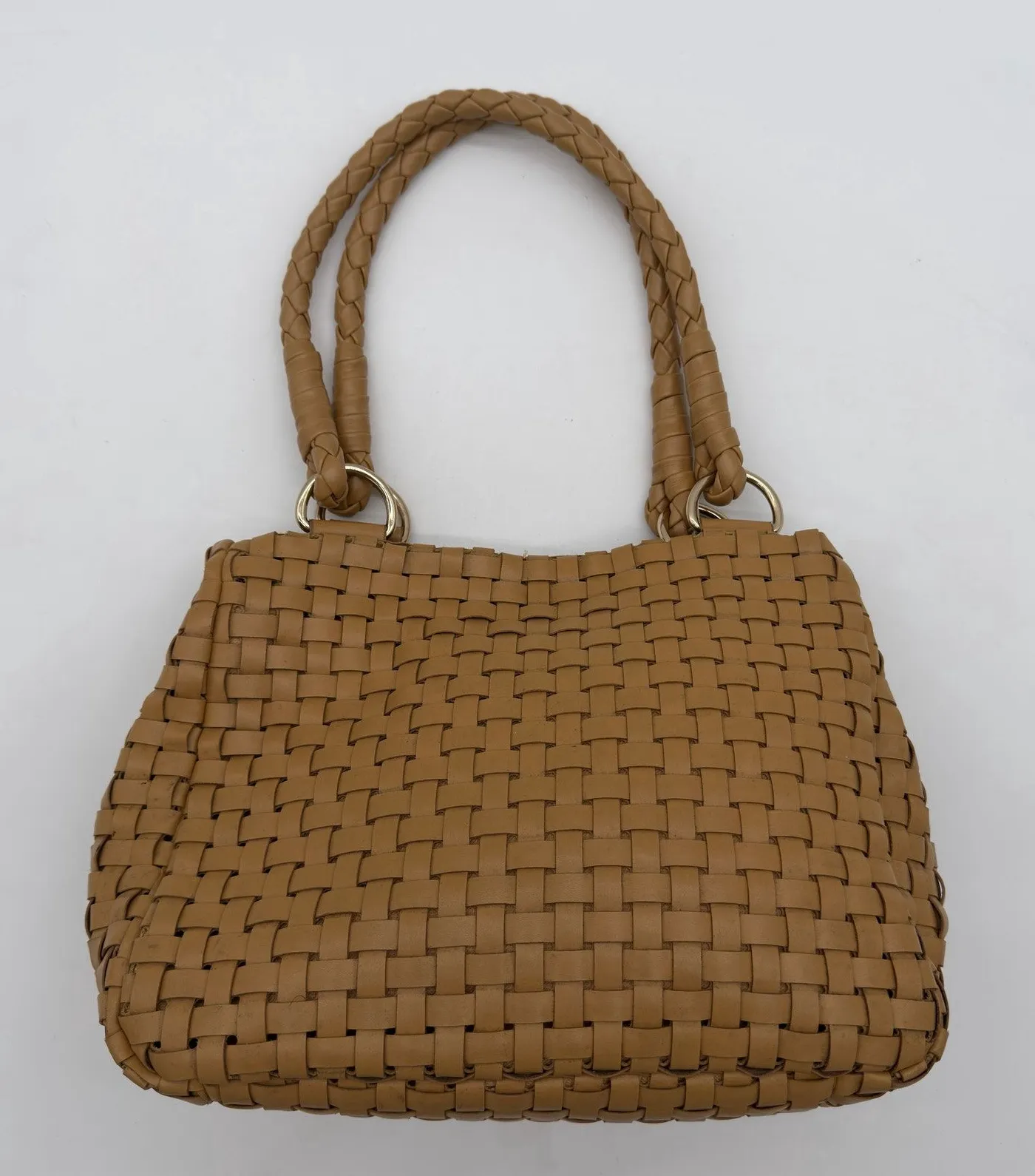Nine West Vegan Leather Tan Basket Weave Vacation Shoulder Bag This Nine West shoulder bag is perfe... Show more