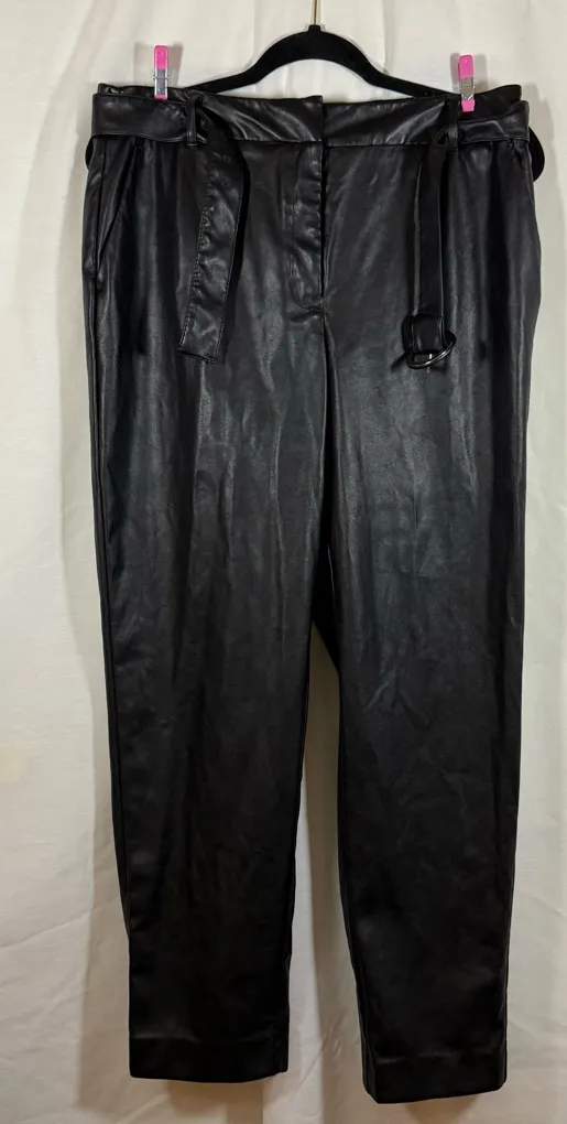 Nine West Womens Faux Leather Slim Ankle Belted Pants Gathered Waist Black in color 100% polye... Show more