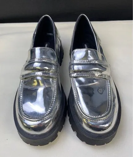 These Nine West Women's Silver Chunky Heel Shoes/Loafers are stylish and comfort-driven. Its chunky... Show more