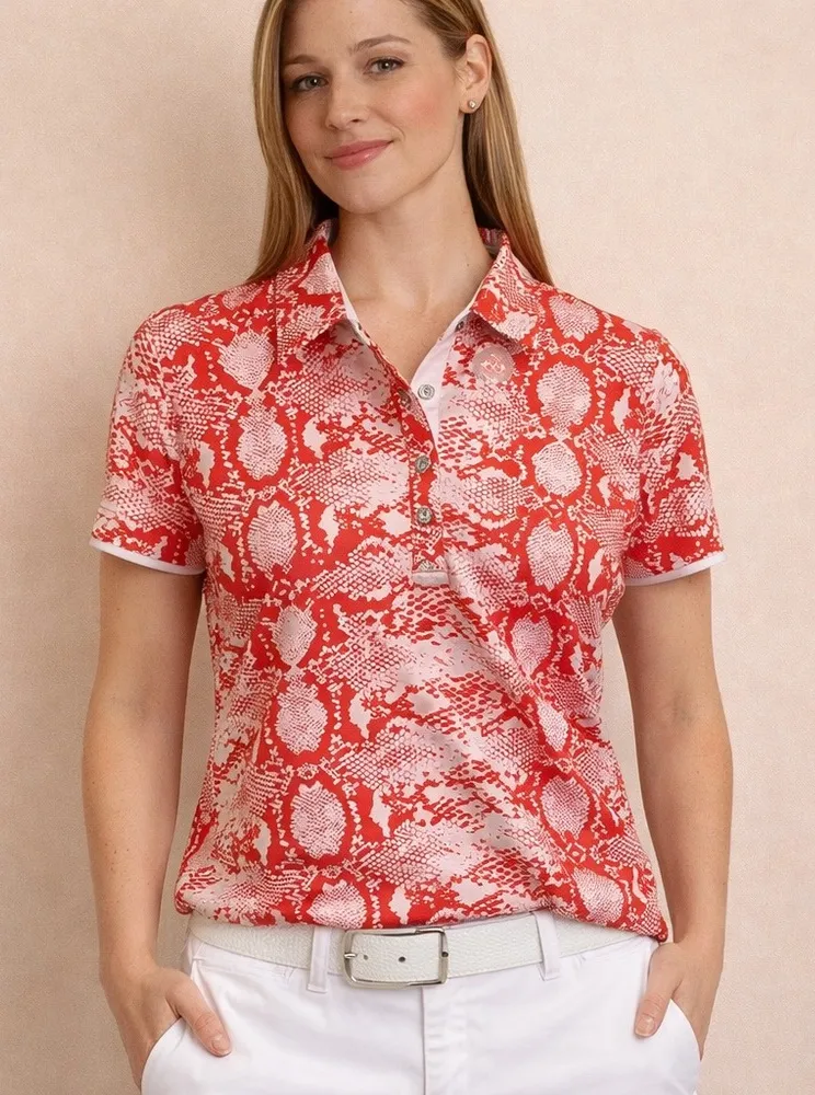 NVO Sport Red & White Snakeskin Print Golf Polo Dress | Women’s Medium ⸻ Description Sporty meets... Show more