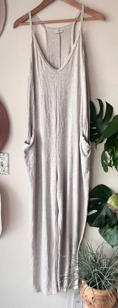 NLT Kourtney jumpsuit beige Excellent preloved condition Women’s SIZE LARGE Approx Measurements Pit to pit 20.5” flat Inseam 23.5” **model pics not actual color used to show fit casual stretch neutral cozy