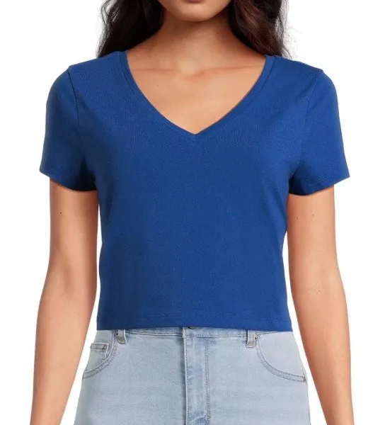 NO BOUNDRIES sapphire blue v-neck cap short sleeve pullover soft stretchy. Crafted from a soft polye... Show more
