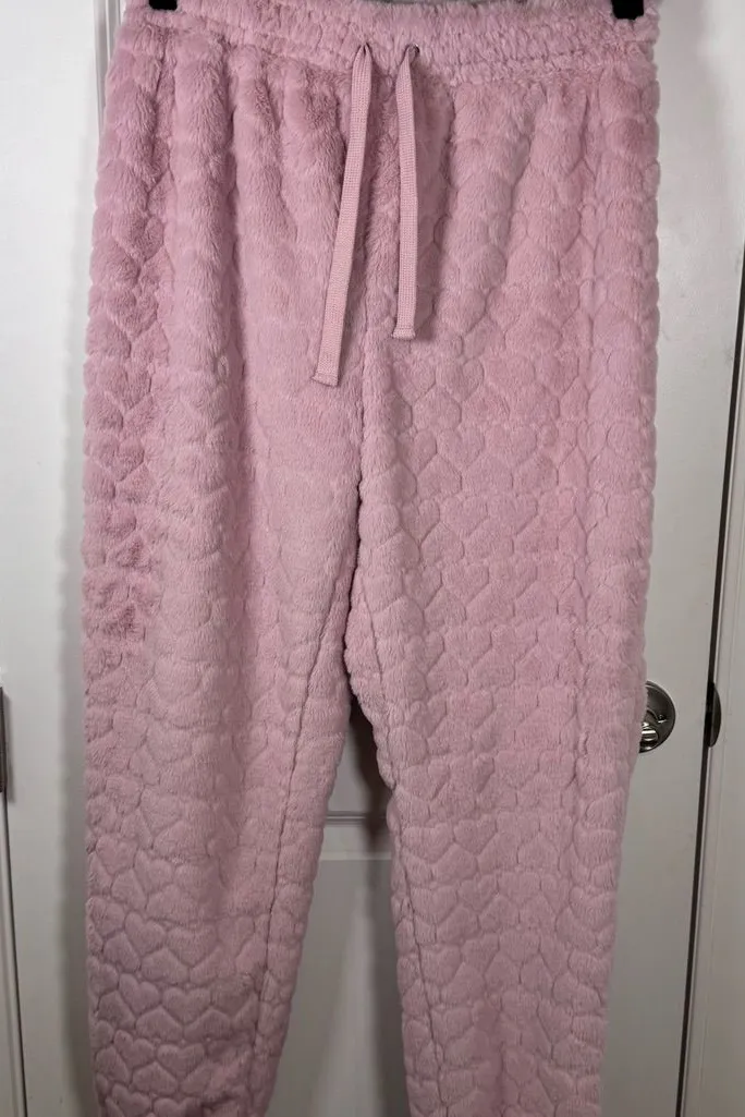 Dreamy pink faux fur lounge joggers with an allover heart texture — the ultimate cozy chic winter es... Show more