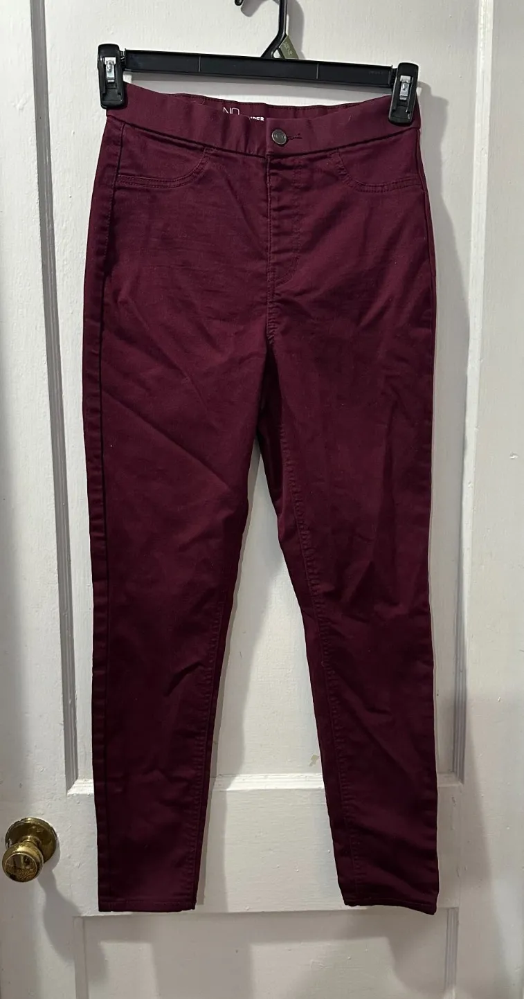 The No Boundaries Super High Rise Burgundy Skinny Jeans in size M are a stylish and versatile additi... Show more