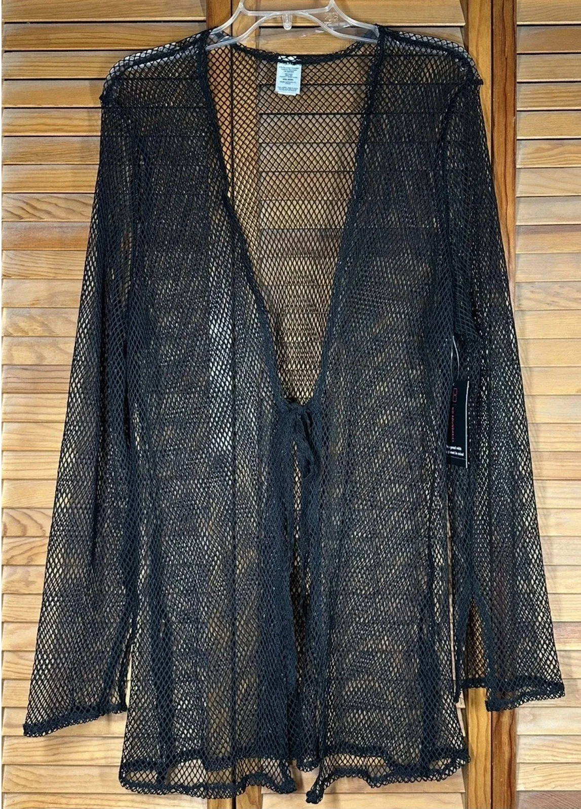 No Boundaries Women's Black Tie Front Side Slit Mesh Long Sleeve Swim Cover Up New with Tags! Size... Show more