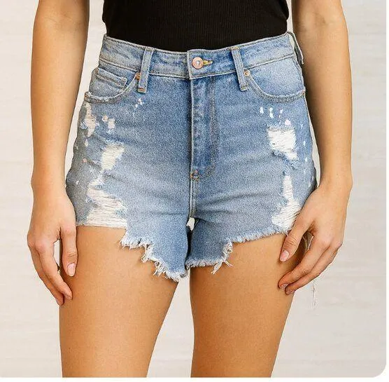 These No Boundaries jean shorts showcase a trendy distressed design in a vibrant blue hue. The high-... Show more