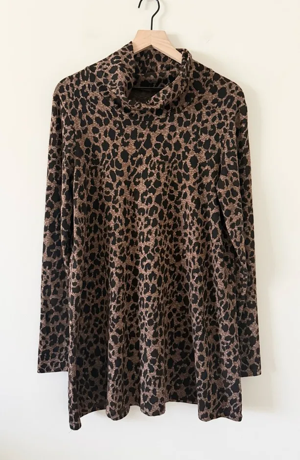 No Brand Long Sleeve Turtleneck Tunic Top in Leopard Print Brown & Black - L Size L - $23 - From Nicole