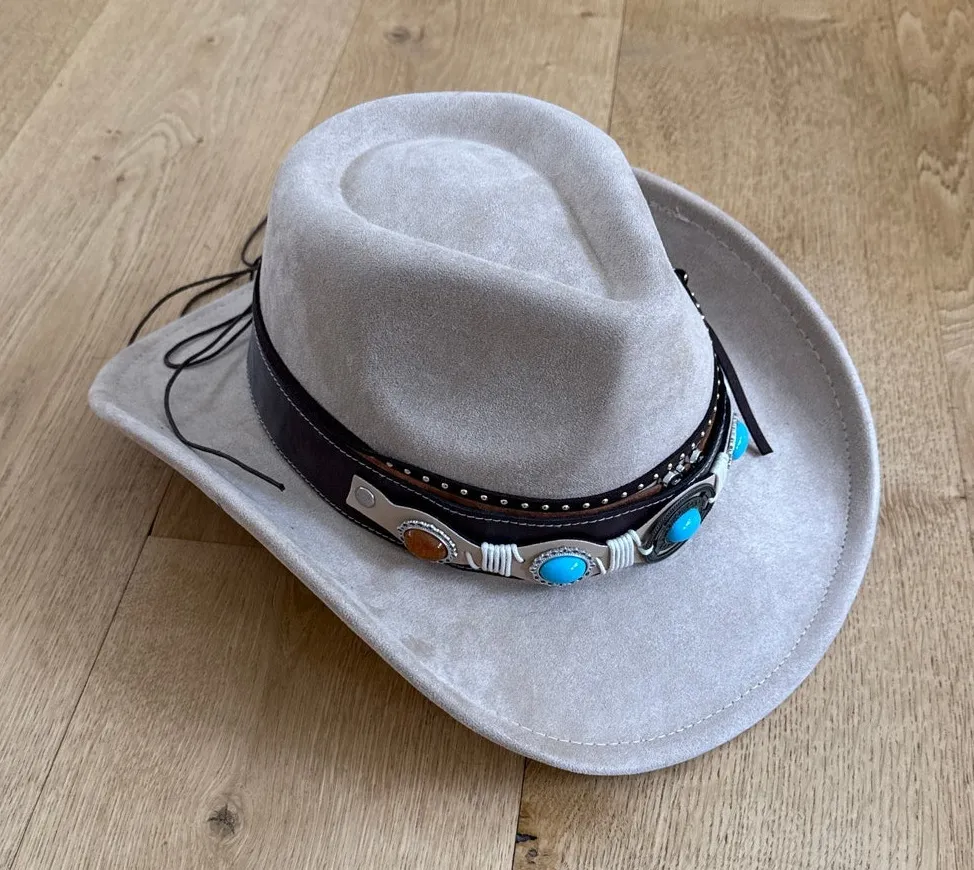 No Brand Western Cowgirl Hat with Concho Band One Size Beige Blue - $45 - From Dressed in