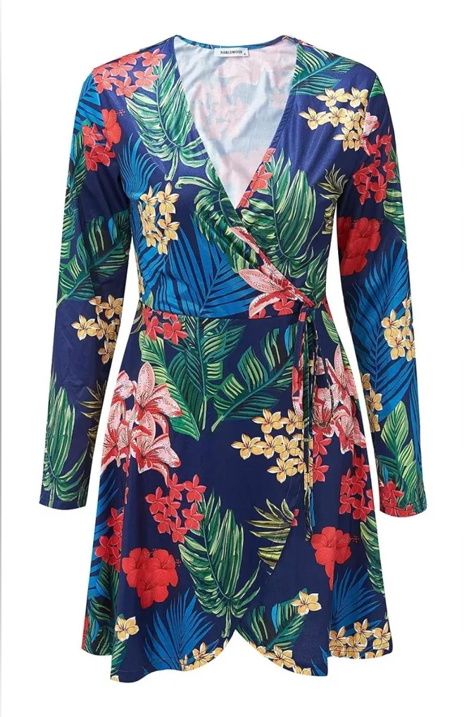 Noblemoon Dress Size XXL Blue Floral Long Sleeve Coverup Sundress - $23 - From Laura