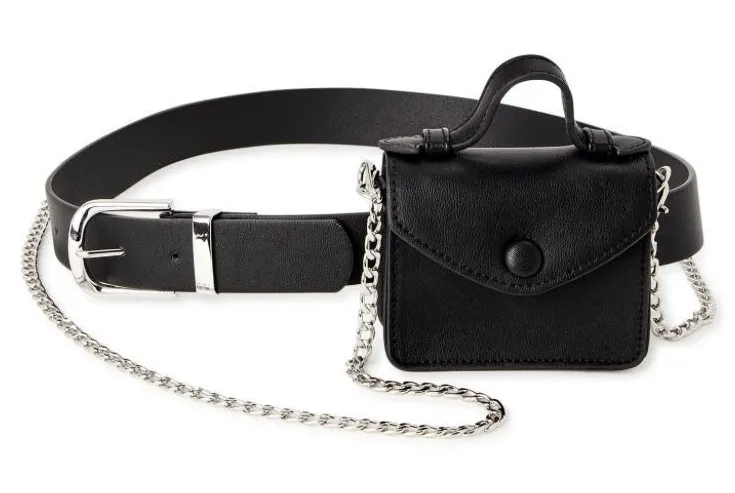 Versatile black mini bag by No Boundaries that can be worn as a belt bag or crossbody. Features silv... Show more