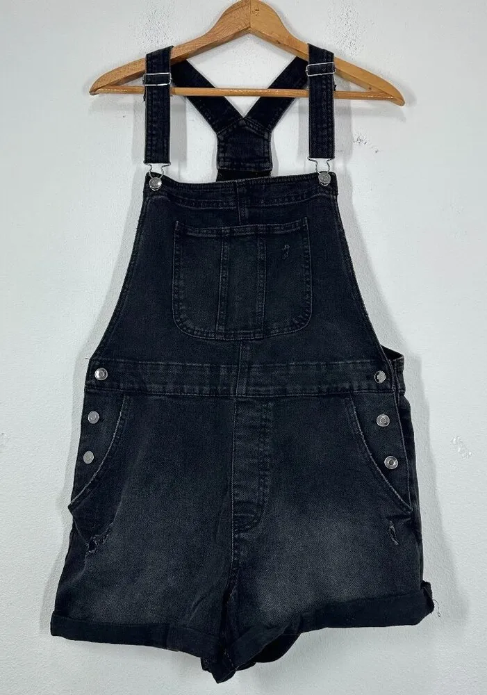 NoBo No Boundaries Black Denim Shortalls Overalls Size XL Summer Casual Grunge Pre-Owned in Great Co... Show more